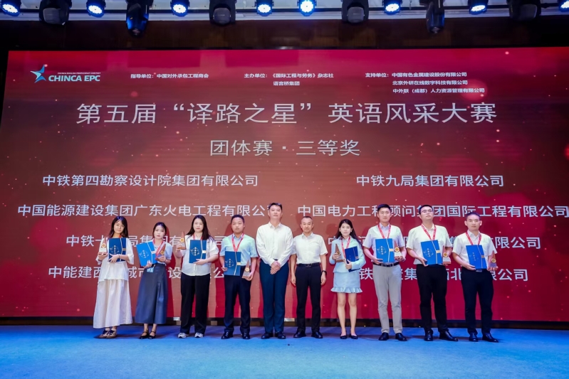 日前,由中國對外承包工程商會指導,《國際工程與勞務》雜志社、語言橋集團聯合主辦的第五屆“譯路之星”英語風采大賽決賽在成都落下帷幕。本屆大賽吸引了43家商會企業參加,中鐵物資西北公司首次組團參賽并榮獲“團體賽三等獎”。